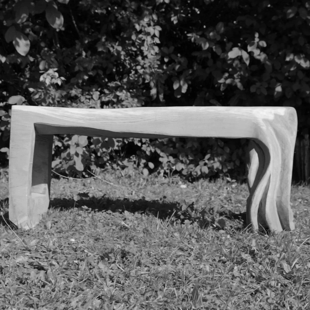 Ich arbeite in einem Zustand voller Dynamik und Konzentration: Beitel und die dröhnende Motorsäge sind meine Verlängerung. Sie sind mehr als nur Werkzeuge – sie sind meine Zeichenstifte, mit denen ich das Holz bearbeite. Ich befreie die fließenden, organischen Formen und transfomiere den Rohstoff Holz in etwas völlig Neues.